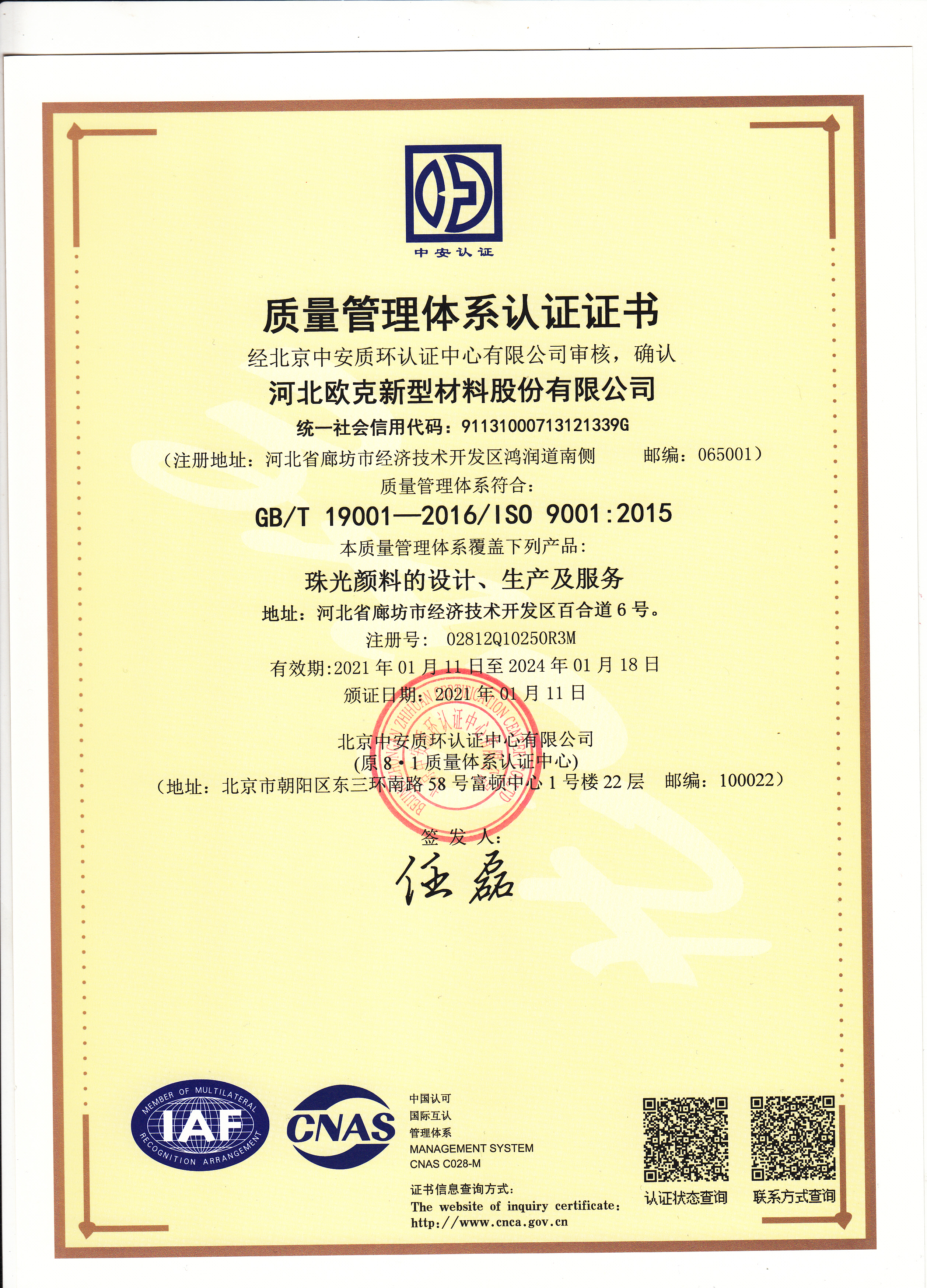 質(zhì)量管理體系認證