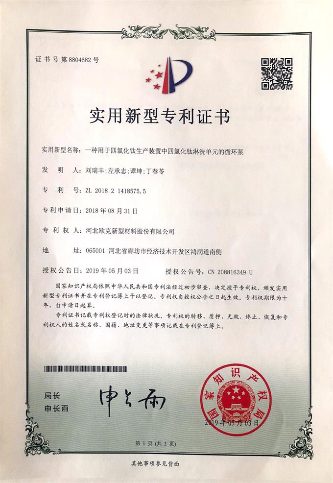 一種用于四氯化鈦生產(chǎn)裝置中四氯化鈦淋洗單元的循環(huán)泵專(zhuān)利
